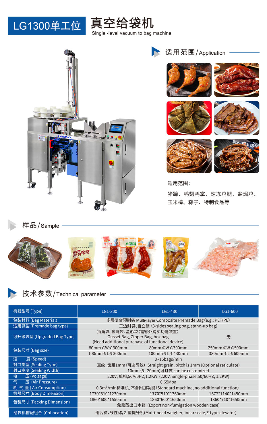 首页/产品/给袋包装机系列/食品真空包装机(单工位) 食品真空包装机(单工位) 本款真空包装适用:猪手、盐焗鸡、鸭爪鸭翅、速冻鸡腿、粽子、玉米棒、等特制食品。 Category: 给袋包装机系列 Tag: 单工位真空包装 Description 产品视频 详情页 设备咨询表单 Description 产品视频 详情页 设备咨询表单请在浏览器中启用JavaScript来完成此表单。请在浏览器中启用JavaScript来完成此表单。您的姓名: *联系方式 *公司名称 *E-mail询价表单 *提交表单 Related products 牛肉丸包装机(真空包装) 鱼片肉片自动包装机 10头组合秤颗粒包装机 花生米真空包装机