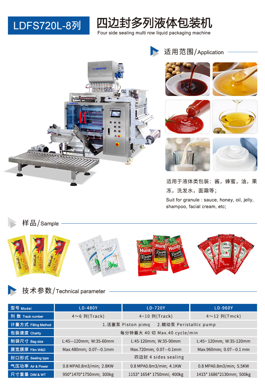 首页/产品/多列包装机系列/番茄酱多列包装机(8列) 番茄酱多列包装机(8列) 本机为8列四边封包装机,适用于医药、保健品、食品等液体大批量生产包装,例如:颗粒:感冒冲剂、干燥剂、种子、白砂糖、味精;酱料:番茄酱,辣椒酱,辣椒油;粉末类:固体饮料,酵素等 Category: 多列包装机系列 Tag: 四边封 Description 产品视频 详情页 设备咨询表单 Description 产品视频 详情页 设备咨询表单请在浏览器中启用JavaScript来完成此表单。请在浏览器中启用JavaScript来完成此表单。您的姓名: *联系方式 *公司名称 *E-mail询价表单 *提交表单 Related products 粉末四边封包装机(6列) 护发素多列软膏包装机 辣椒酱多列包装机(10列) 果冻条包装机