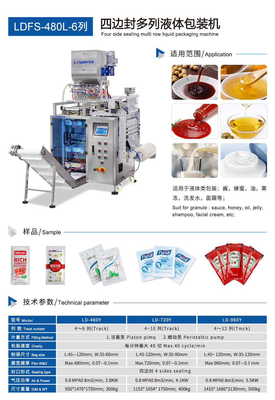 首页/产品/多列包装机系列/蛋黄酱多列包装机(6列) 蛋黄酱多列包装机(6列) 本机为6列四边封包装机,适用于医药、保健品、食品等液体大批量生产包装,例如:颗粒:感冒冲剂、干燥剂、种子、白砂糖、味精;酱料:番茄酱,辣椒酱,辣椒油;粉末类:固体饮料,酵素等 Category: 多列包装机系列 Tag: 四边封 Description 产品视频 详情页 设备咨询表单 Description 产品视频 详情页 设备咨询表单请在浏览器中启用JavaScript来完成此表单。请在浏览器中启用JavaScript来完成此表单。您的姓名: *联系方式 *公司名称 *E-mail询价表单 *提交表单 Related products 异型袋多列机(4列) 护发素多列软膏包装机 果冻条包装机 番茄酱多列包装机(8列)
